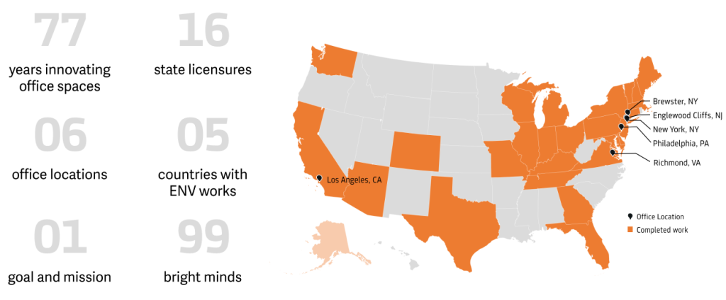 Today | E | N | V | is a team that designs for success with client-driven solutions, deep engagement, and uncompromising service. We have 6 different office locations and are located on both coasts.
